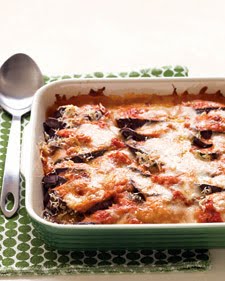 Baked eggplant and a healthier bechamel match up in an Italian classic made virtuous. The cheeses are on top, instead of in layers, with a creamy pink sauce underneath.