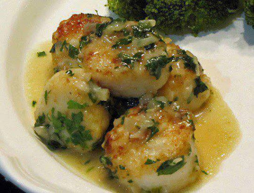 Melt remaining butter in the pan with scallops; add shallots, garlic, and parsley and sauté for 2 more minutes, tossing the seasonings with the scallops. Add the wine and cook for 1 minutes longer. Add salt and pepper to taste. Serve immediately with a squeeze of lemon juice.
