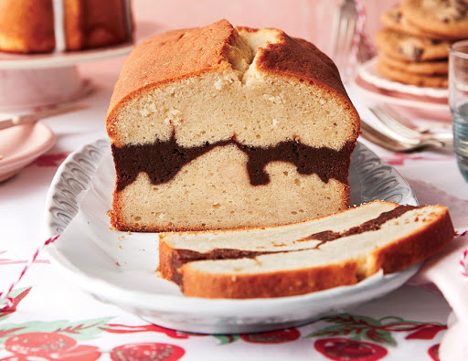 Prepare the Brownie Ripple Batter: Preheat oven to 325°F. Lightly coat a 9- x 5- x 3-inch loaf pan with cooking spray. Line bottom and 2 long sides of pan with parchment paper, allowing 2 to 3 inches to extend over sides. Combine butter and chocolate in a microwave-safe bowl. Microwave on HIGH until melted, about 1 minute. Stir until smooth. Whisk in sugar, flour, egg, and vanilla to form a loose batter. Set aside to cool slightly while making cake batter.