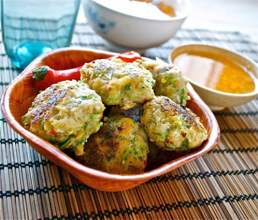 Añade el pescado, limpio de piel y espinas, la clara de huevo y la pasta de curry. Tritura hasta obtener una pasta homogenea. Con las manos un poco humedecidas ve preparando pequeñas hamburguesas de pescado. Deja reposar 30 minutos en el frigorífico.
