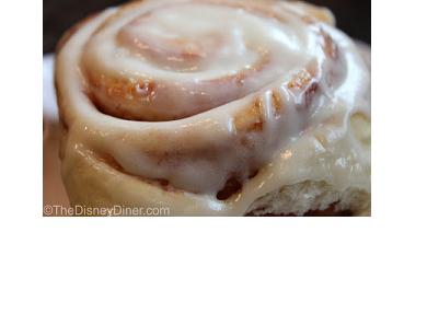 At the Main Street Bakery in Magic Kingdom the most popular item on their menu is the cinnamon rolls. These huge rolls are filled with brown sugar and cinnamon then topped with lots of cream cheese frosting.