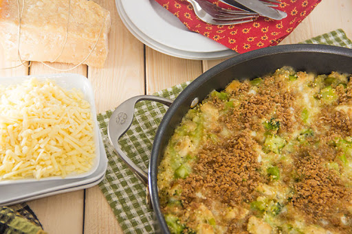 8.Transfer the skillet to the oven and bake until breadcrumbs are lightly browned and cheese begins bubbling, about 10 minutes. Serve.