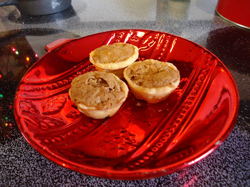 Mix well and put 1 TB over nuts in tassie pan. Place pecan half on top or sprinkle top with chopped pecans. Bake at 325 degrees about 25 to 30 minutes. Do Not grease tassie pans. Remove to a cooling rack before tassies cool.