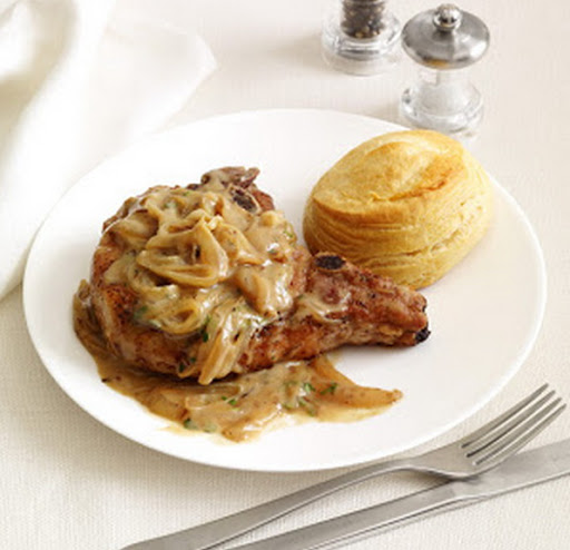 Add the buttermilk and return the chops to the skillet. Bring the sauce to a simmer, then reduce the heat to medium low and cook until the sauce is thickened and the chops are just cooked through, 10 to 12 minutes. Serve with biscuits.