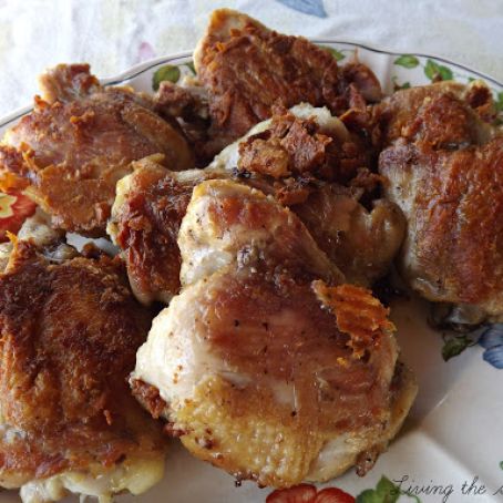 Combine all of the ingredients for the brine in a large pot; add the chicken thighs and refrigerate for at least two to three hours or overnight.