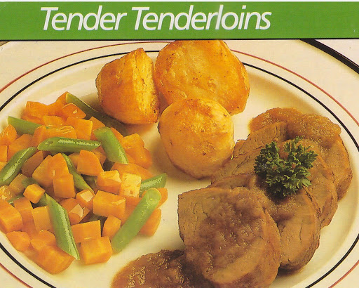 In food processor or blender, process apples and cooking liquid until smooth. Return to casserole; stir in apple juice. Bring to boil over high heat, scraping bits from bottom of casserole. Slice tenderloins; serve with app;e-onion sauce and vegetables as desired. Serves 4