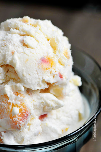 Once ice cream is almost ready, add chopped peaches along with any juices from the pan with the peaches. Continue making ice cream until it has completely made. Serve immediately for softserve ice cream or place in an airtight container and place in freezer for a few hours or overnight for a firmer ice cream.