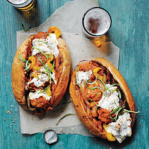 2. Combine first 6 ingredients in a bowl; mix gently. Working with damp hands, gently shape beef mixture into 16 meatballs. Arrange meatballs in a single layer on a heavy-duty baking sheet coated with cooking spray, leaving 6 inches of open space on one end. Place bell pepper halves, skin sides up, on open space on pan. Broil 6 inches from heat for 7 minutes, turning meatballs once. Remove pan from oven. Place peppers in a small paper bag; fold to close tightly. Let stand for 10 minutes. Remove peppers from bag. Peel and slice into 1/4-inch-thick strips.