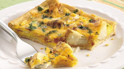 Remove partially baked crust from oven. Spoon potato mixture evenly over crust. Sprinkle remaining 1/2 cup cheese and the parsley over top.