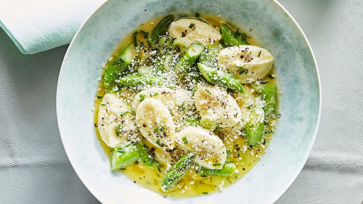 Ricotta Dumplings with Asparagus and Green Garlic