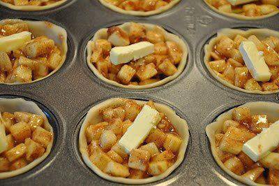 Gently fill the crusts with your apple mixture; you should be able to fill until slightly mounded; put a dab of butter on each pie. Cover as desired with left over dough. Brush with melted butter and bake at 400 degrees fahrenheit for 18 to 22 minutes.