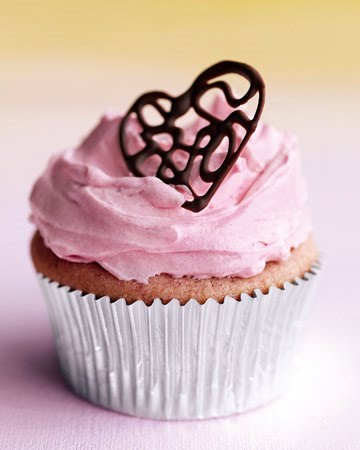 Divide batter among baking cups, filling each three-quarters full. Bake until a toothpick inserted into centers comes out clean, about 20 minutes. Let cool in tins on wire racks for 15 minutes. Remove cupcakes, and let cool completely. Decorate with pink buttercream and lacy chocolate hearts.