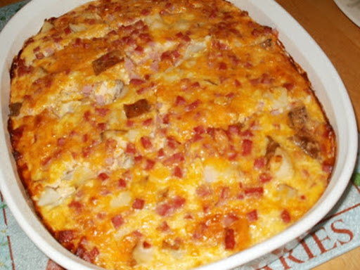 Bake , uncovered , at 350 degrees F for 35- 40 min or until set and bubbly. Let stand for 10 min. before cutting.
