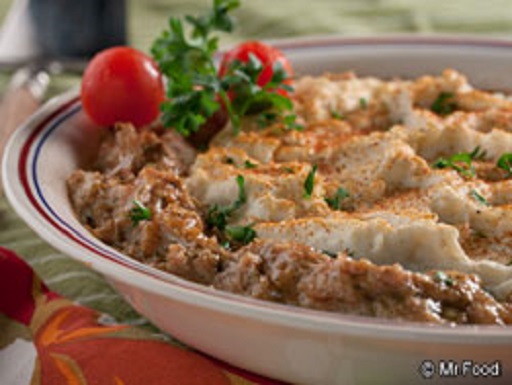Form a ring of chicken mixture around the edge of a 9-inch deep dish pie plate. Place cooked mashed potatoes in center of chicken ring. Sprinkle paprika over potatoes and bake 30 minutes.