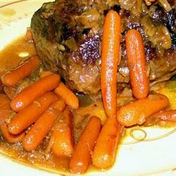 MY NOTES: This was so delicious BUT - I did not follow these instructions. I browned a 3 lb boneless chuck roast in my blue Le Creuset Braiser, then added the remaining ingredients and included some carrots. I just put the garlic and onions around the browned roast and then added the rest, and I heated up the whole thing on the stove top until hot. Then I put it in the oven at 275 degrees for 3 hours. Came out fork tender and I will do it this way from now on. One change: Use just ONE envelope of onion soup mix next time; otherwise it's a tad too salty and it also takes over the taste too much and masks the other flavors (red wine!) I served this with egg noodles because of the delicious gravy but it would also be good with mashed potatoes.