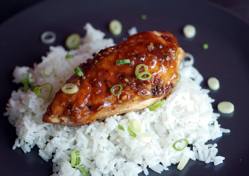Sprinkle with scallions. Divide rice among plates; top each with a chicken breast.