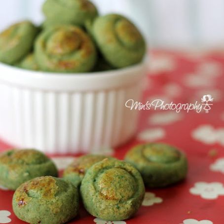 Sieve the flour into a big bowl, add in green pea powder and sugar, mix well.