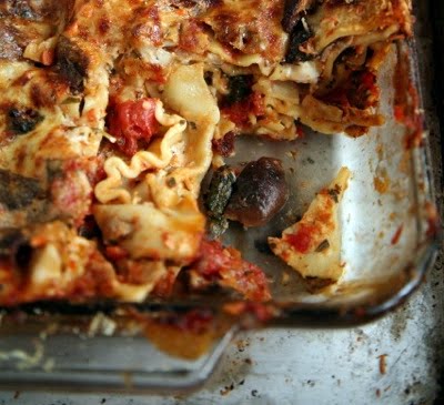 3. Meanwhile, heat olive oil and remaining butter in a 6-qt. pot over medium-high heat. Add mushrooms; cook 10 minutes. Add dried tomatoes, spinach, garlic, parsley, oregano, thyme, rosemary, and tomato paste; cook 3 minutes. Add canned tomatoes. Cook for 8-10 minutes, stirring occasionally. Set sauce aside.