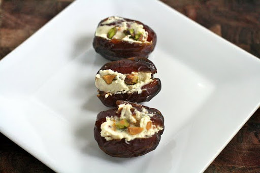- 12 large, plump dates, halved and pitted