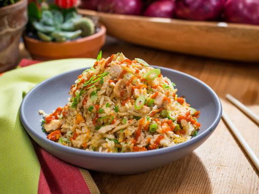 For the rice: In a large bowl, combine the rice, peas and carrots, soy sauce and chicken. Add the egg mixture and toss to coat. Gently pat into the prepared dish. Cover with aluminum foil. Bake, removing the foil about 10 minutes into baking, until the eggs have set and the casserole is golden brown, 20 to 25 minutes.