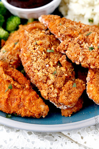 * If your breading is white in some places after you flip the chicken, this simply means it did not come in contact with the butter. The chicken will still tasted great exactly as is or you can lightly spray with cooking spray and proceed to broil.