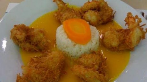2. Se baten los huevos a que esponjen; uno a uno se empanizan los camarones para después pasarlos por el huevo batido y luego por el coco rayado (puede poner en un plato un poco de coco y encima el camarón capeado para encima de éste ponerle mas coco). Se fríen