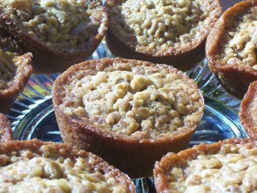 In a large bowl, combine the pecans, sugar and flour. Make a well in the center of the mixture.