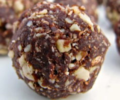 Use a tablespoon to take a spoon full from blender —pack it in between your hands, by forming a fist—then, roll into a ball. (Please note: if you notice that your crumbles are not packing together, just add another date, or a few dates to make the mixture more sticky.)