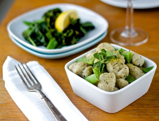Serve with your favorite pasta sauce, or just drizzle your gnocchi with a touch of olive oil, and dust with nutritional yeast and fresh ground black pepper. The green beans make a nice addition too.