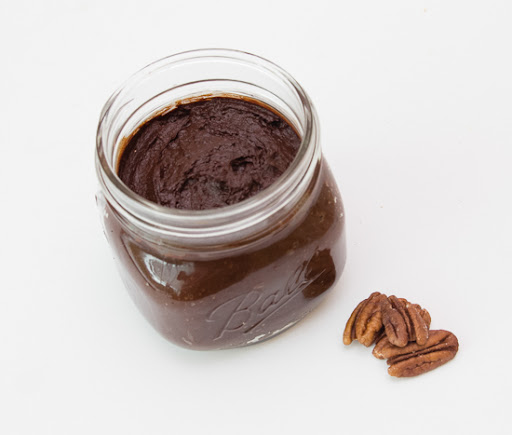 In a food processor combine ingredients. Pulse until it reaches a smooth, creamy texture. You can play around until it reaches a consistency and flavor that suites you. I tend like the cinnamon to build flavor and stevia to cut some of the bitterness of the cacao.