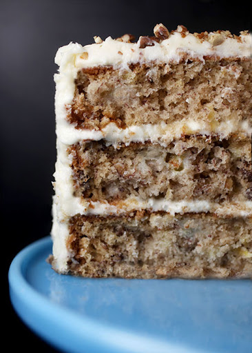 To assemble: Gently level cakes using a large serrated knife to remove any mounded tops. Place first layer cut side down and spread frosting on top with an offset spatula. Continue with the remaining two layers and then frost the sides. Store in fridge.