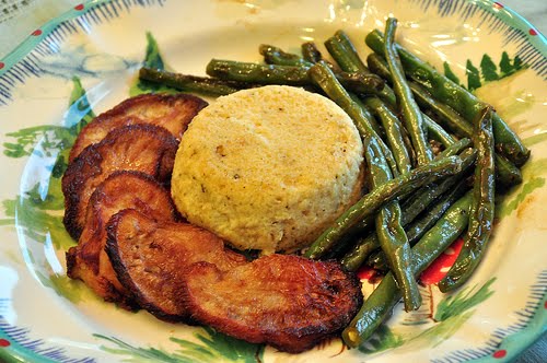 Roasted Garlic Custard, Pom Pom Mushrooms, Green Beans