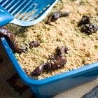 Prepare pudding according to package directions and chill until ready to assemble. Crumble sandwich cookies in small batches in a food processor, scraping often. Set aside all but 1/4 cup. To the 1/4 cup add a few drops of green food coloring and mix. When cakes are cooled to room temperature, crumble them into a large bowl. Toss with 1/2 of the remaining cookie crumbs, and the chilled pudding. You probably won't need all of the pudding, you want the cake to be just moist, not soggy. Line kitty litter box with the kitty litter liner. Put cake mixture into box. Put half of the unwrapped tootsie rolls in a microwave safe dish and heat until softened. Shape the ends so that they are no longer blunt, and curve the tootsie rolls slightly. Bury tootsie rolls randomly in the cake and sprinkle with half of the remaining cookie crumbs. Sprinkle a small amount of the green colored cookie crumbs lightly over the top. Heat 3 or 4 of the tootsie rolls in the microwave until almost melted. Scrape them on top of the cake and sprinkle lightly with some of the green cookie crumbs. Heat the remaining tootsie rolls until pliable and shape as before. Spread all but one randomly over top of cake mixture. Sprinkle with any remaining cookie crumbs. Hang the remaining tootsie roll over side of litter box and sprinkle with a few green cookie crumbs. Serve with the pooper scooper.