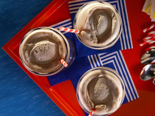 Ladle some of the root beer into a glass. Top with desired amount of vanilla ice cream.