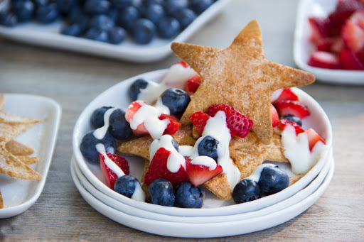 Red, White, and Blue Dessert Nachos (With Fresh Berries and Coconut Cream)