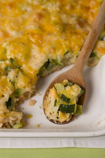 Press cracker crumbs on bottom of prepared pan to form a crust. Dot with butter. Spoon zucchini on top.