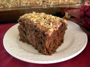 Pour the batter into the prepared pan. Bake for 35 to 40 minutes or until the cake tests done with a toothpick. Cool completely before frosting with the frosting of your choice.