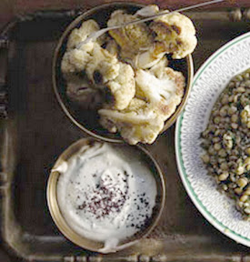 Roasting cauliflower in a very hot oven gives it an appealing crisp-tender texture and toasty flavor that pairs perfectly with the tart tahini dipping sauce in this dish.