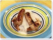 Top cooked biscuit with browned chicken sausage. Serve with milk gravy.