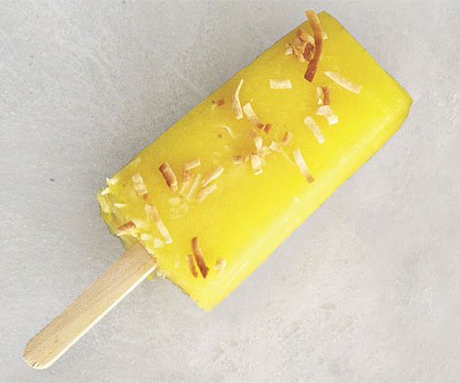 Distribute the coconut among ten 1/3-cup pop molds. Add the fruit mixture to each mold, leaving about 1/4 inch at the top to allow for expansion. Stir gently with a Popsicle stick to distribute the coconut. Freeze until partially frozen, about 1 hour. Insert sticks and freeze again until the pops are fully set, 4 to 6 hours more.