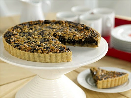 3) Roll out the dough on a lightly floured surface into a 12-inch round. Press into the bottom and sides of a 9-inch tart pan with a removable bottom, then trim the excess dough. Prick the bottom all over with a fork. Refrigerate until firm, about 30 minutes.