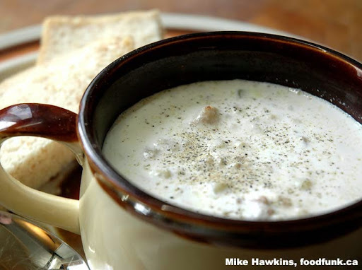 One saving culinary grace in this region is our ability to make a really great chowder. Our diet may revolve way too much around Toonie Tuesday at Taco Bell, but it seems just about everybody around here has some great tips on making a great seafood chowder. I recently had a bowl of fresh chowder at the Snug Harbour Restaurant in Liverpool, Nova Scotia and once again was floored by the natural ability here to make great chowder. The Boardwalk Restaurant over in Digby, Nova Scotia makes an absolutely killer chowder too.