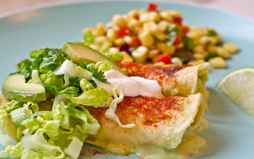 Spoon about a cup of the filling down the center of each tortilla. Roll each tortilla tightly and place side by side in the baking dish, seam side down.