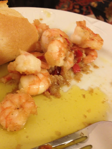 Finely mince 3 garlic cloves, or put them through a garlic press. In a medium bowl, combine minced garlic with about 2 tablespoons olive oil and salt. Stir in shrimp and let marinate at room temperature for 30 to 45 minutes.