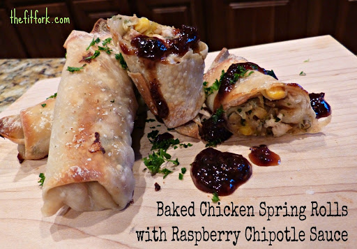 Baked Chicken Spring Rolls with Raspberry Chipotle Sauce