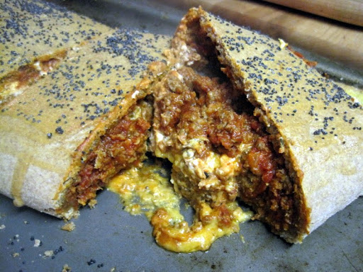 Top with crescent roll and place on top and pinch seams together. Brush with egg, and if desired sprinkle with poppyseed.