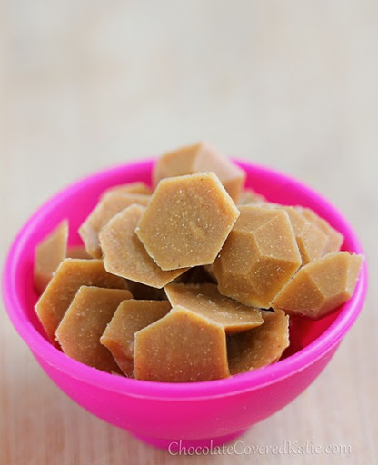 Peanut butter chips recipe: Melt the first ingredient if it’s not already liquid. Combine all ingredients in a bowl, and stir well to form a paste. (Note: I personally much prefer the taste of the chips when made with coconut oil. However, use the cacao butter if you wish to bake with the chips.) Smooth into candy molds or onto a sheet of wax or parchment paper, and freeze until solid. If using the wax/parchment option, break chips into pieces once fitm. The coconut version of these vegan peanut butter chips should be stored in the freezer; the cacao butter version can be stored in the fridge, freezer, or at room temperature.
