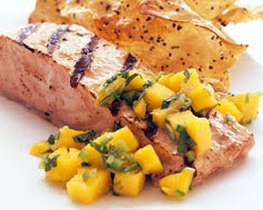 Serve with rice, grilled eggplant brushed with curry paste and the mango mint relish.