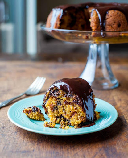 Pumpkin Chocolate Chip Bundt Cake with Chocolate Ganache