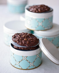 A deeply rich, moist cookie speckled with hazelnuts, pistachios and dried cherries. It’s a good thing you can serve them warm. You won’t want to wait!